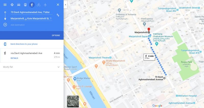 цена 1000 Lari в месяц. С мебелью, кладовкой, бытовой техникой: кондиционер, стиральная машина, холодильник, телевизор и мелкая бытовая техника. 3 минуты от метро Марджанишвили, дом расположен напротив старинного сада роз, бывший сад Горького. улица Агмашенебеля, 70. бесплатная территория парковки